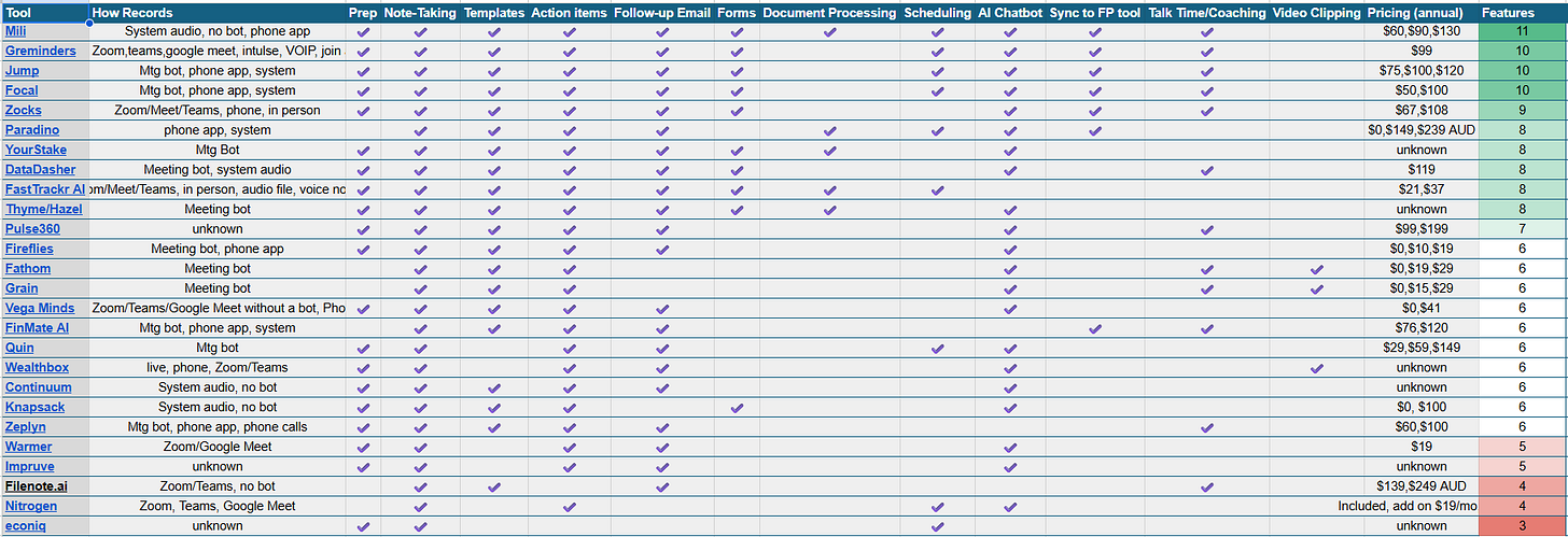 Recently, I attempted to capture all the ai notetakers for advisors along with their feature sets: