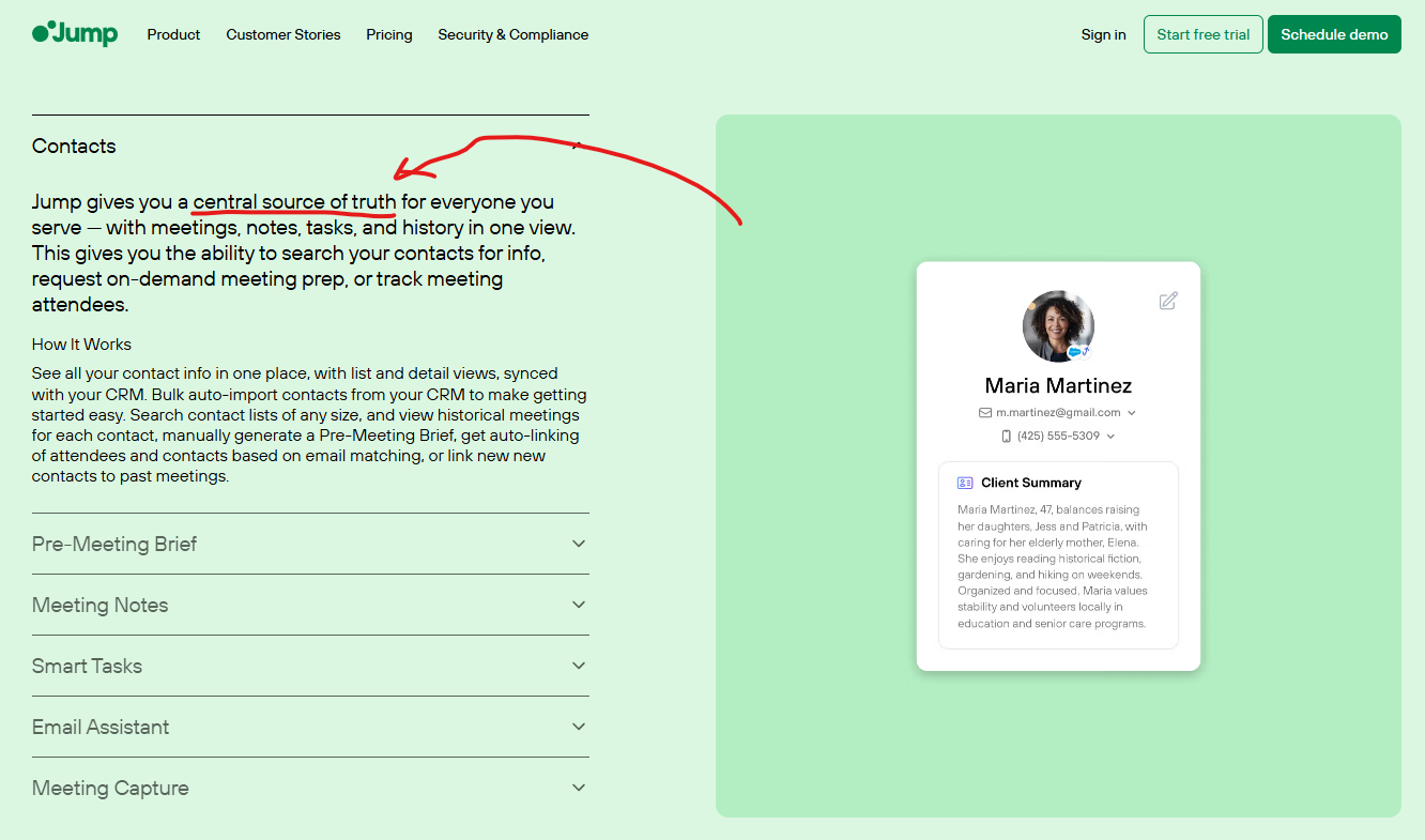 Jump has a contacts database… but even more interesting, they’re calling it a “central source of truth.”
