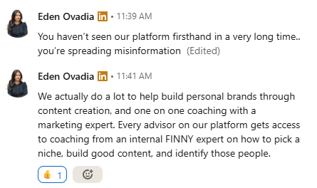 But a Saas company versus an actual marketing service are quite different… I don’t know how they’ll help advisors build personal brands at scale. That sounds difficult. But its a nut I want to try to crack too…