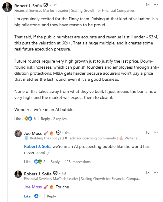 Either way, 10,000 firms or 10,000 advisors… that’s a BHAG of a goal… especially for an AI prospecting company that’s pivoting to marketing services…