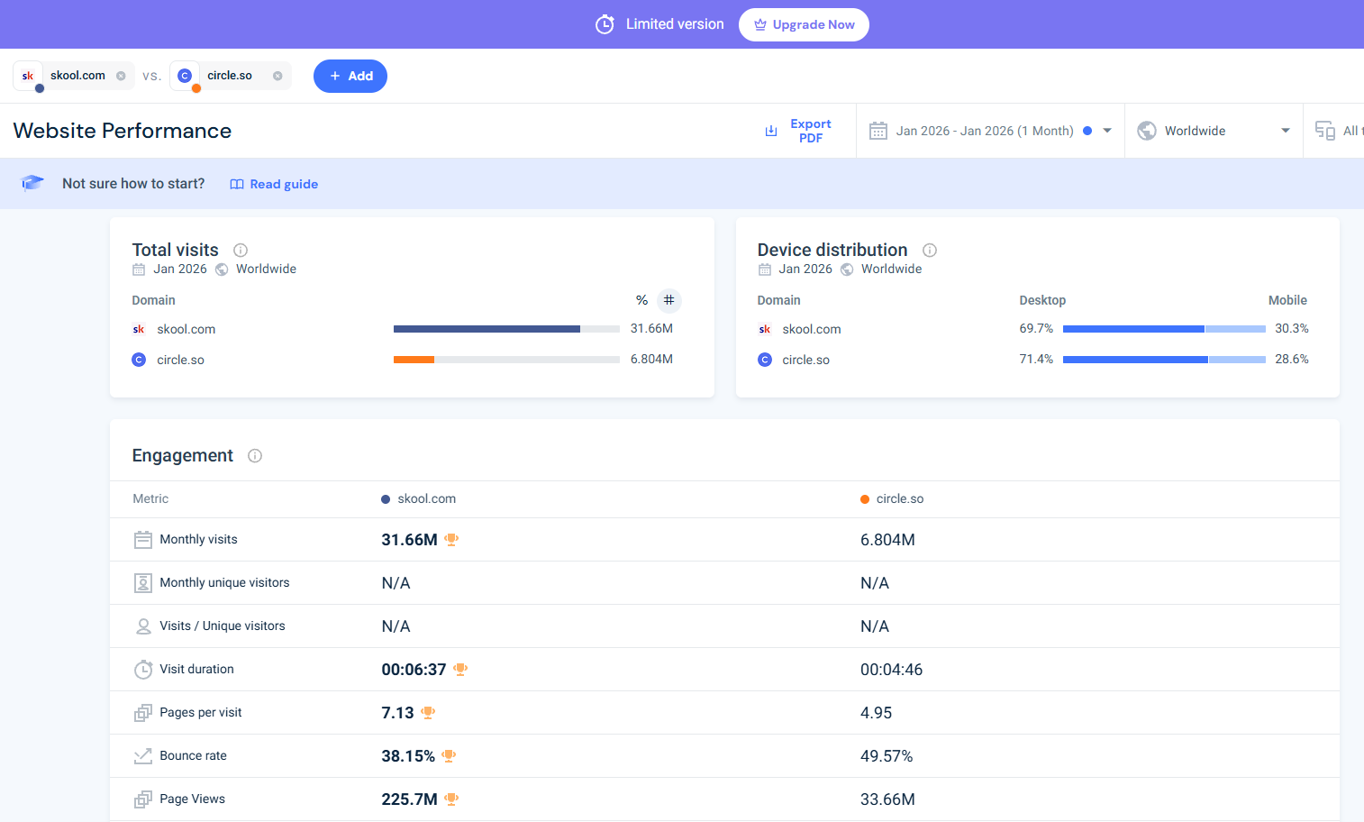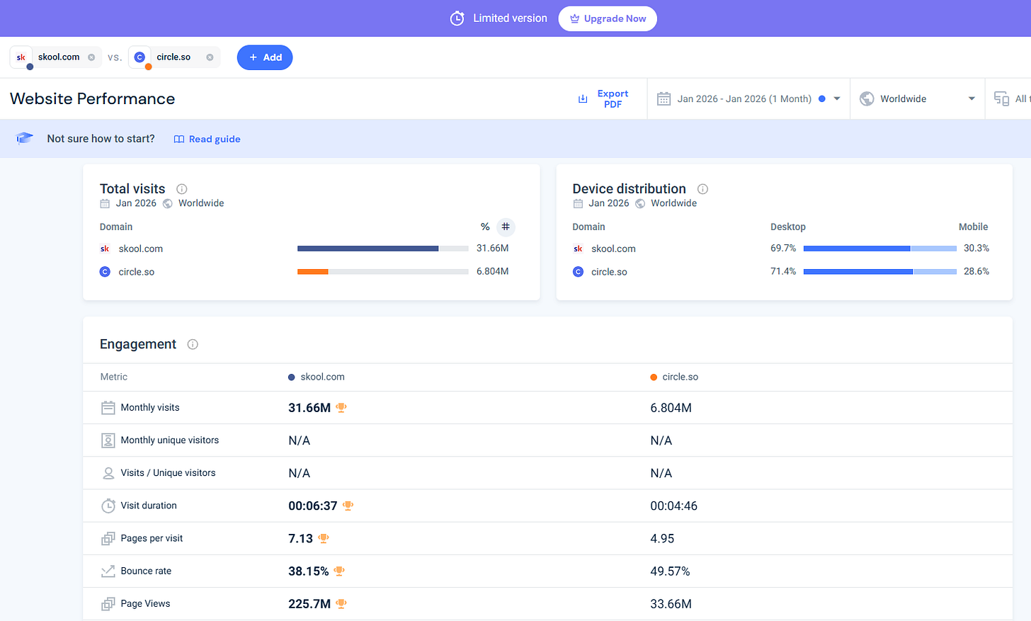 P.S. for those of you who still think Circle is cooler… well, it’s not cooler. This is comparing traffic between Skool.com and Circle.so on SimilarWeb: