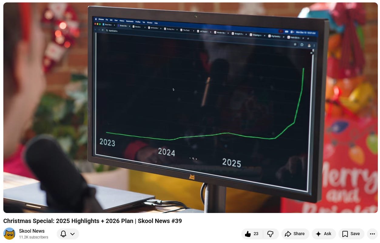 Here’s a screenshot from the Skool Christmas News video: